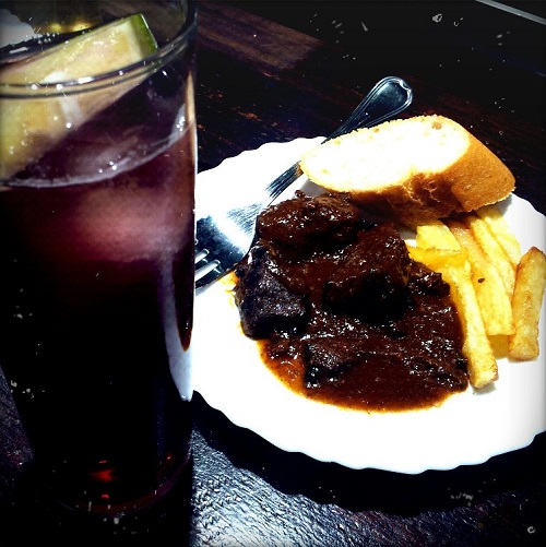 Ensalada de tomate con aceite (simple y llano), migas y patata asada aparte, se remató con la de la casa, aquella tapa ganadora: el rabo de toro; y tinto de verano como postureo esencial del visitante. Foto que no hace justicia. Pero, consultado de nuevo al estómago, confirma la tesis de que, incluso llegando tarde a cenar, lo tenían dominado. Sabrosura.